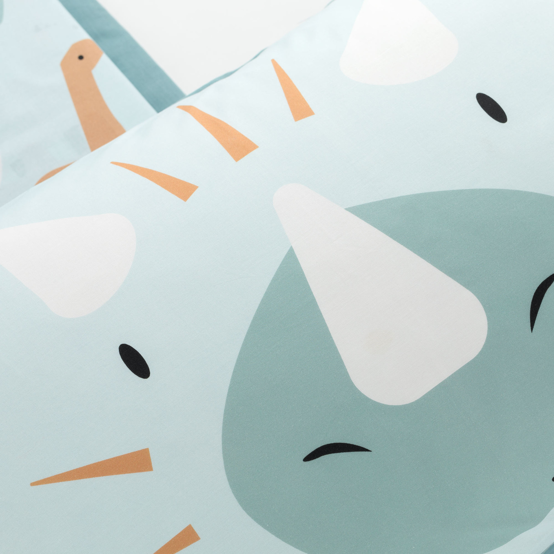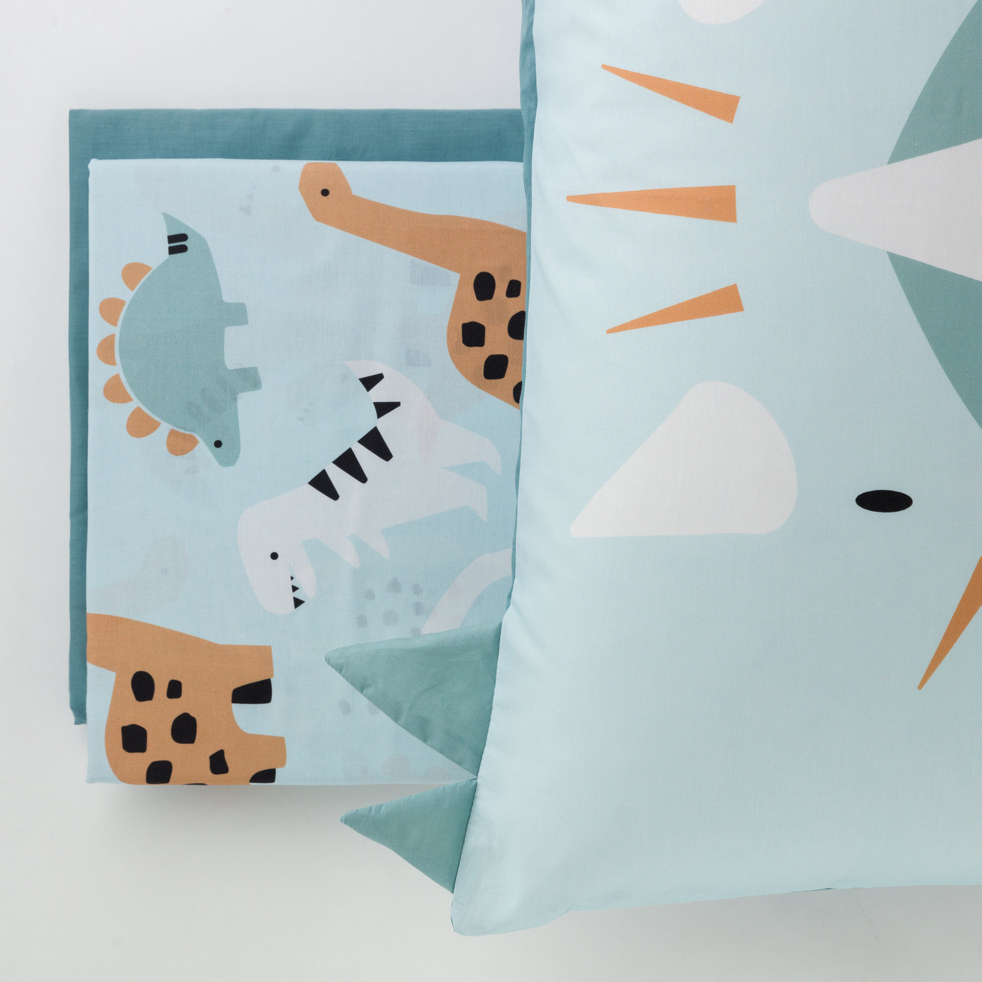 Grazie al completo Arlo ogni dettaglio del letto diventa parte di un racconto in cui i dinosauri sono protagonisti. Le creature preistoriche stampate su fondo azzurro si muovono tra le lenzuola come personaggi di una fiaba leggera, caratterizzando una cameretta che invita al gioco e al giusto riposo.